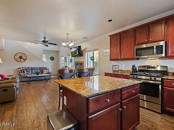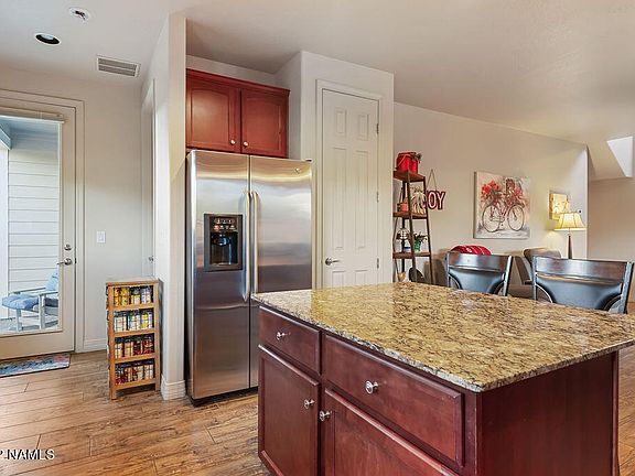 Great townhome conveniently located just minutes away from most of your Flagstaff destinations. This home features an open floor plan with tall ceilings and tons of natural light. Kitchen is very functional with lots of counter space and storage. There are 2 primary suites with the smaller one being located on the first level. New exterior paint and $17,500 worth of solar panels 9/2022. New interior paint and flooring 3/2021. Seller is a licensed Real Estate Agent in Arizona.