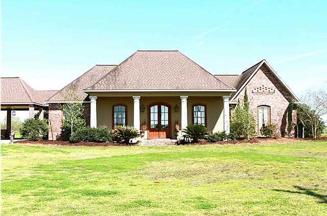 Amazing custom home on 5 acres in north Crowley. This home features all pine wood doors, brick, slate and wood floors, custom cabinets, marble bath and shower, cypress beams, and 2 fireplaces just to name a FEW. Front windows are old church windows from Holland and antique french doors opening to a perfect-for-entertaining back seating area featuring old salvaged rough cut pine ceilings! This home sits on a laser leveled 5 acres featuring a pond and pictures don't do it justice. Schedule your appointment today!