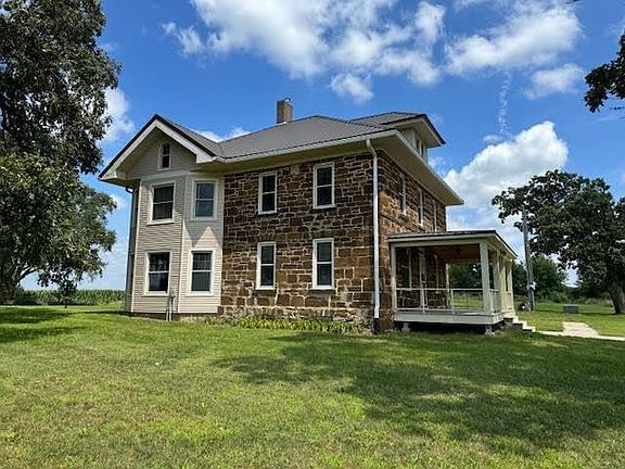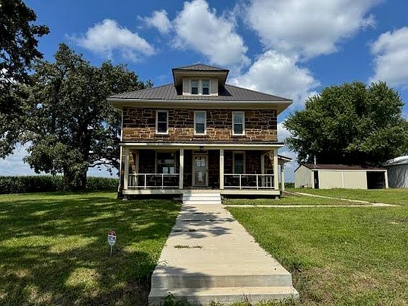 Large older 2 story has four bedrooms, 2 baths, over 2500 square feet, a fireplace, full unfinished basement, and a covered open front porch. This property sits on 1.54 acre of land which is a very irregular shape. The grain bins are NOT part of this property. But it does have 2 large out buildings which include a steel utility building measuring 42 x 60, plus a 20 x 32 machine/utility building. Heated by gas but no propane tank is on the property. Septic system was installed in August, 2020. Information believed accurate but not guaranteed. If property built prior to 1978 Lead Base Paint potentially exists. Property may qualify for Possible financing by seller. Ask your agent. There are multiple offers on this property. Highest and Best offers must be submitted by 9/4/2024, 1:00 PM Central Time.