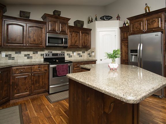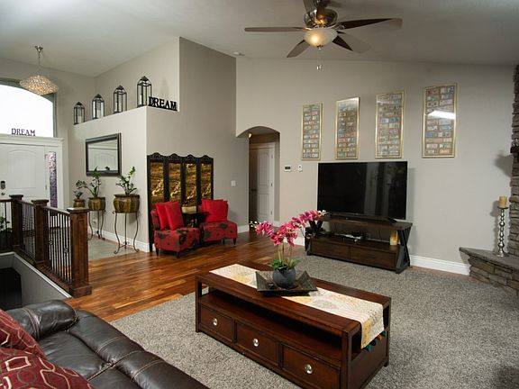 GORGEOUS ranch-style home with main floor open living, kitchen, and dining area. Vaulted ceilings, wood floors, granite countertops, large island, dark wood cabinetry, living room fireplace. Main floor master suite with roomy bathroom that features separate tub and shower, 2 sinks, and large closet. Main floor laundry & mud room. Home has over 3300 square feet with 1682 on each floor. RV parking plus a 3-car garage. You will want to take a look at this beautiful home!