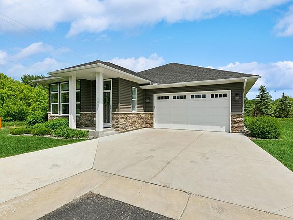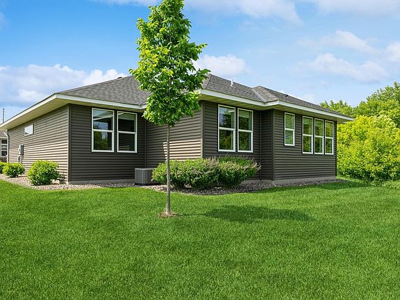The highly sought after 3 BR "Birch" floor plan on the best lot in the development! 3 good sized BR's plus a main floor den/office. Open floor plan w/lots of oversized windows for natural light. 10 ft ceilings, enameled woodwork, luxurious primary suite w/tiled private bath, main floor laundry room. Upper end finishes including granite counters, stainless appliances, LVT flooring, tile bath and stone fireplace. You will spend summers on the private screened porch surrounded by mature trees and green space for single family feel without the maintenance. Walking path adjoins property to enjoy all Delano has to offer. Impeccably maintained and spotless!
