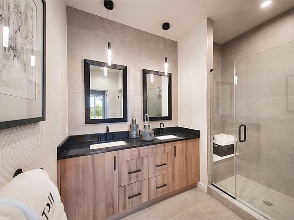 Stylish contemporary living. The Vinland Elite's inviting covered entry and foyer reveal the stunning two-story great room. The well-designed kitchen is enhanced by a large center island with breakfast bar, ample counter and cabinet space, and sizable pantry. The private primary bedroom suite on the first floor is complete with an ample walk-in closet and spa-like primary bath with dual-sink vanity and luxe shower with seat. Secluded on the second floor and central to a generous loft, the secondary bedrooms feature roomy closets and shared full hall bath. Additional highlights include a convenient powder room, centrally located laundry, and additional storage.