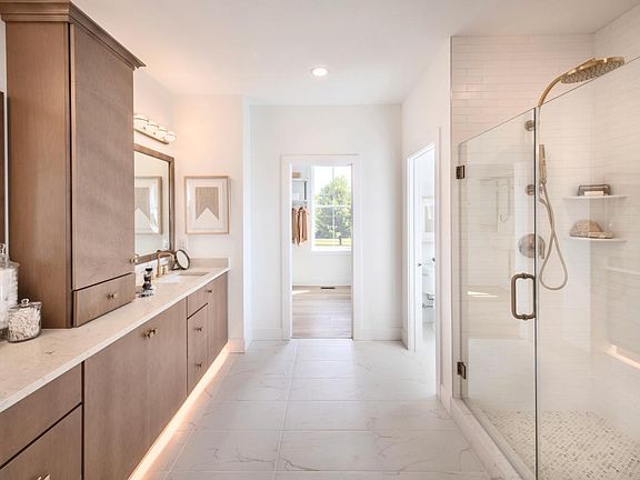 With a first-floor primary bedroom suite and spacious living areas, the Vetri offers an ideal balance for everyday living. The Vetri s alluring side entryway and foyer open up to the great room, casual dining area, and well-appointed kitchen. A large center island with breakfast bar offers plenty of counter and cabinet space alongside a generous walk-in pantry. The primary bedroom suite is enhanced by a stunning walk-in closet and gracious primary bath with dual-sink vanity and large luxe shower. The second floor is home to a generous loft and secondary bedrooms featuring sizable closets and a shared hall bath. Additional highlights include a convenient powder room and everyday entry, centrally located laundry, and ample unfinished storage.