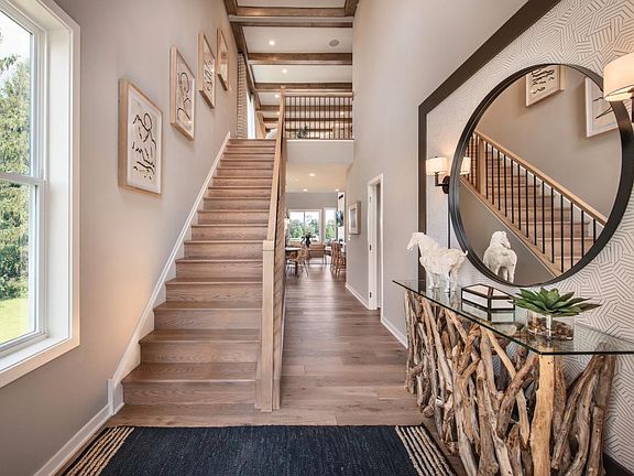 The Radley's welcoming covered entry and inviting two-story foyer flow into the soaring two-story great room. The well-equipped kitchen overlooks a bright casual dining area, and is complete with a large center island with breakfast bar, plenty of counter and cabinet space, and roomy pantry. The secluded primary bedroom suite is enhanced by a sizable walk-in closet and spa-like primary bath with dual-sink vanity, large luxe shower with seat, and linen storage. Central to a generous loft, the spacious secondary bedroom features dual walk-in closets and shared hall bath. Additional highlights include a convenient powder room and everyday entry, centrally located laundry, and additional storage.