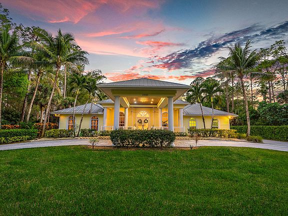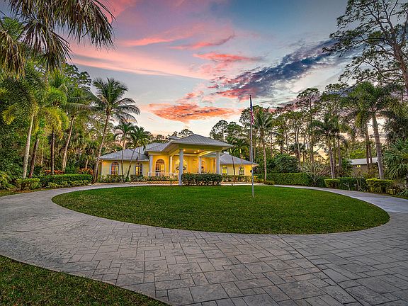An architectural MASTERPIECE. Situated on 1.26 acres, this sprawling 5 bedroom, 3.5 bath home features 4 bedrooms plus an office in the main house and 1 bedroom & 1 full bathroom in the guest house/cottage. Built SOLID, this home boasts CBS construction, impact windows/door & a metal roof.Drive up and be WOWED by the expansive circular driveway & oversized 2-car portico. The inviting porch is the perfect spot to sip your morning coffee or unwind after a busy day. Upon entering the French double doors your eyes will be drawn to all of the intricate details, including the vaulted ceilings, coffered accents & gorgeous travertine flooring that flows throughout the main house. The kitchen is open to the family room where you'll find the wood-burning fireplace. The kitchen features high-end wood cabinetry, granite counters, and Maytag appliances. Right off the kitchen are the formal living and dining rooms, perfect for entertaining. The spacious master with tray ceilings, his and her closets, and en-suite with jacuzzi tub and separate shower. Three additional bedrooms are located towards the back of the home, along with a full bathroom and laundry room. The office/den is being used as a massage room and features french doors. The powder room/half bath is located off of the kitchen. The main house also has central vacuum and surround sound throughout & a two-car garage.