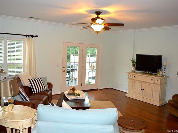 Lovely upscale townhome in the heart of Ballantyne! Minutes to great schools, shopping/restaurants. Three stories of great living space. Open floor plan features large great room and eat-in kitchen and two spacious bedrooms include Master Suite with walk in closet. First floor has rear load garage plus a third bedroom/flex space perfect for a sunny home office. With no rear neighbors enjoy the large private deck and short walk to the pool. Upgrades: new water heater, crown molding, flooring, plantation shutters.