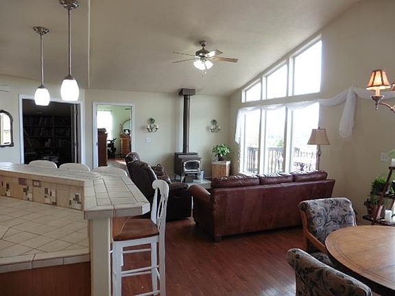 A view YOU will want to wake up to each morning! 2007 built rancher w/territorial view that is inspiring. 1900 +/- SqFt of comfortable living with open-great room concept w/hardwood floors, abundant light w/full bank of windows w/northerly exposure, kitchen is expansive w/ pantry, eating bar, formal dining, 3 bedrooms, large master suite w/5-point ensuite w/large walk-in custom tile shower w/ mud set shower pan, oversized tub, double sinks, den/office w/closet that could be 4th bedroom - deck off of great room & off master suite. Laundry/mud room features dog shower, oversized, fully finished, heated 2 car garage, cement board siding, f/a heat w/heat pump/central AC, wood stove, all situated on 20+ acres - includes several outbuildings - small barn, chicken coop & garden shed all w/power & water to barn. RV hookup for sewer & power, multiple sites for a shop -land features fir, tamarack & pine. A peaceful setting & view like this are hard to find! Parcel can be split into two 10 acre parcels. See today!