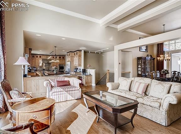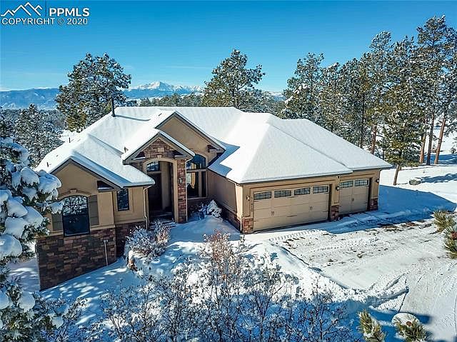 Welcome to this fabulous Black Forest ranch style home. Located on the western edge of the âForestâ, the location is minutes from the city and Flying Horse. Four bedrooms/five baths/dedicated office all on 4.84 acres with trees, meadows, and Pikes Peak views. Incredible opportunity in this hard to find location. Custom home w/ custom features included a RV/workshop insulated garage of 30x45. Full basement walkout, hardwood, a/c, radiant heat, RV friendly. Upgraded kitchen appliances. A must see. Everyone knows the Forest is the place to be! This rare location makes shopping, schools, movies, and the city only minutes away. Tucked away on small hill with privacy, this fully fenced 4.84 acres features rocky outcroppings, grassy meadow, scrub oak, mature Ponderosa, and an incredible Pikes Peak view. As you enter the home, you will find 20 ft ceilings in the living areas along with formal dining and living with crown molding and high, architectual beams. Beautiful hardwood with inlays are featured along with a large nook overlooking the Peak and a real cook's kitchen with commercial, 6 burner range and large, double ovens. The main level feaures a dedicated office plus a beautiful master and appointed, 5 piece bath. The deck overlooks the land and sunsets. The walk out basement features three bedrooms/two baths plus wet bar and family room. FAG and A/C on the main level w/radiant basement heat plus a finished, heated garage with hot/cold wtr. Other features are central vac, hand troughed drywall, solid slab granite throughout, new 50 yr roof, RV hookup on main garage, fully fenced, great shop, landscaping, and sprinklers. Come and enjoy the home and the view!