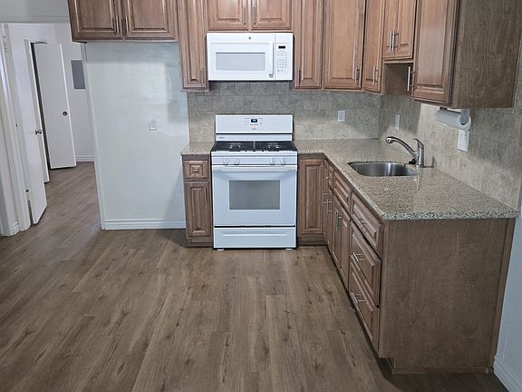 This is a lower rear unit in a 23 unit building with nice plank floors throughout, stove, microwave, new bathroom, nice bedroom with a hole wall of closets, close to 405 and 105 freeways, nice neighborhood close to shopping centers Owner pays water and trash, you pay lights and gas. We do have a no smoking of any kind on the property policy. No cable dish, no bbq.