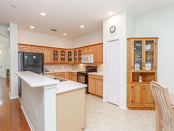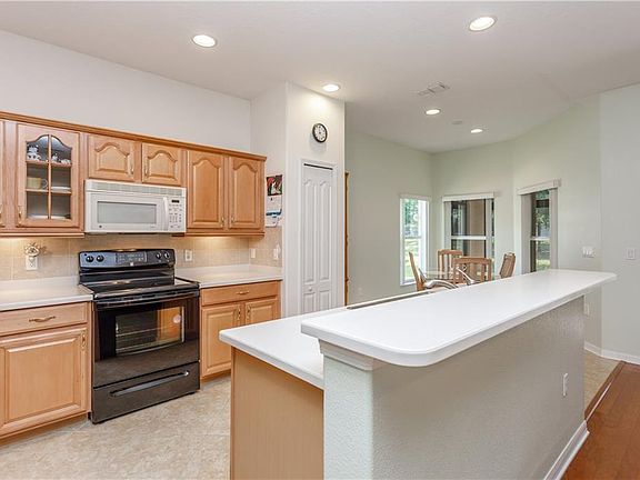 This charming 2006 Ryland built (St. Croix IV) home is located in the desirable, very active 55+ gated Wellington Community. Maintenance free home features 2 bedrooms +den/office, 2 bath, 2 car garage & has 1691 sq. ft. of living area. Amazing features of this lovely home include: eat-in area, living room/dining room combo, great room, split bedroom plan, master bedroom with walk-in closet, rounded corners, corian counters, tile, hardwood and laminate throughout, plant shelves, inside utility, cathedral ceilings, window film w/120 wind resistance, sliders that lead to inviting large vinyl enclosed lanai. Maintenance includes: lawn care, exterior paint & roof.
