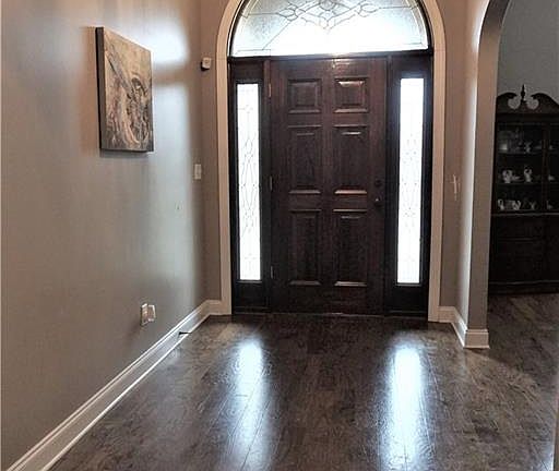 Beautiful 4 bedroom, 3.5 bath home with many custom features. Hardwood floors in the foyer, formal dining room, and family room, custom niches in the family room, custom, staggered height painted and glazed kitchen cabinets with solid surface counter tops, stainless steel appliances, huge master bedroom with vaulted ceiling, master bath with whirlpool tub, ceramic tile shower, with 2 separate vanities and 2 separate closets. Large laundry room and a half bath just off the kitchen. Split plan has large 2nd master with attached bath, and 2 additional bedrooms that share a bath. Permanent stairs lead to HUGE unfinished attic space, unlimited options on space, and it is pre-plumbed for another bath! Screened back porch w/ large open patio overlook wooded property behind the home. Call today!