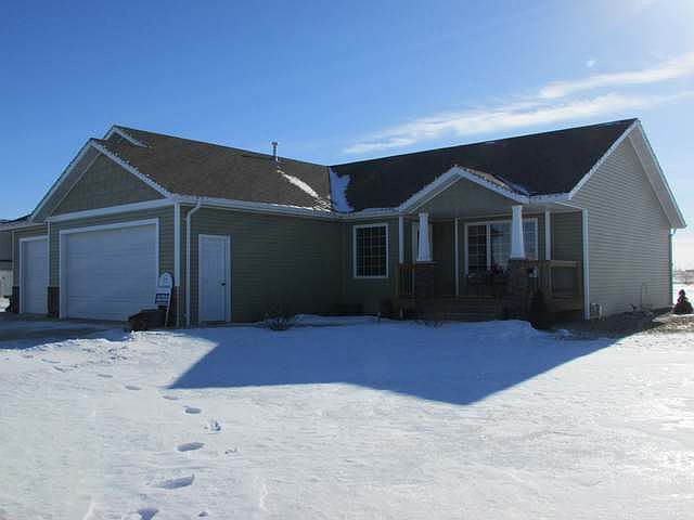 This Beautiful Ranch Style Home is situated next to a Wildlife Management Area on a 1.5 acre lot in Country Meadows Subdivision, with paved roads, and NO SPECIALS! This home has quality throughout, and features a Mission style decor with the solid wood doors, high baseboards, oak cabinets, and beautiful railing! The Entryway, Livingroom, Diningroom, and Kitchen have vaulted ceilings, and flow together, giving the front of the home an open, airy feel! The Kitchen features many cabinets, a pantry, an island, and stainless appliances. The Master suite is nice sized, and features a Master Bath, and a walk-in closet. The Mud room is combined with Laundry, leads to the Garage, is connected to the 1/2 Bath, and features Dura-ceramic flooring. The Basement has a large Familyroom with a gas fireplace, 2 nice sized Bedrooms, a full Bath, and a large storage/utility room. The Garage is finished off, and has a floor drain, hot/cold water, and an overhead, hanging furnace!