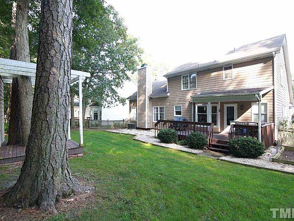 Open & Flowing floor plan in popular Harrington Grove location boasts an awesome fenced back yard with storage shed & new rich granite counter tops in kitchen! Vaulted ceilings in the 1st Floor Master, Family & Dining Rooms add to the open feel. Walking distance to the optional pool & available greenway along with easy access to I-540 & nearby elementary school.