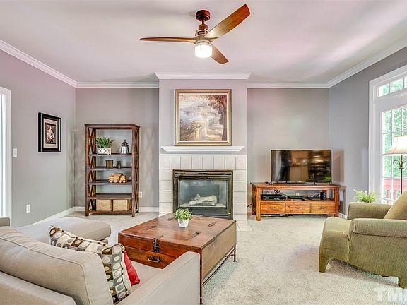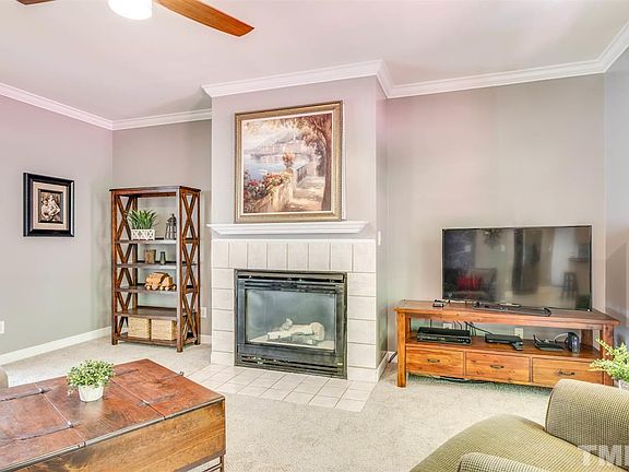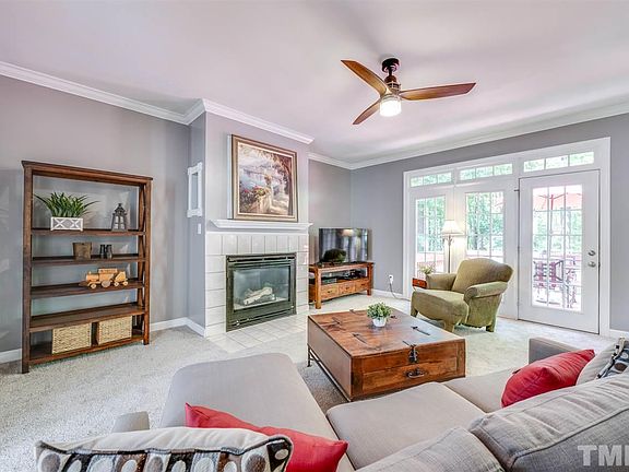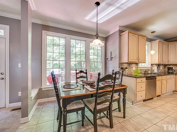 Gorgeous 4 BR, 3.5 bath, brick-front home on cul-de-sac lot features granite counters, SS appliances, huge island, open kitchen/family room, gas log fireplace, large bonus room, formal dining & flex space! Spacious MBR w/private bath & large walk-in closet. Finished 3rd floor suite is light and bright with private bath. Large deck features wooded views of backyard offering tons of potential & privacy! Enjoy this great community w/ pool, tennis, playground, trails & more! Minutes to 540, 40, RTP & RDU.