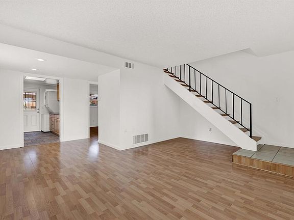 Welcome to this charming end-unit townhome quietly nestled in the back of the VA/FHA-approved Royal Gardens community. Over 1100sf with 3 bedrooms, 1.5 baths, and ample storage throughout, this home has been updated with laminate flooring, stainless appliances and fresh paint. With one bedroom on the first floor and 2 large bedrooms upstairs, this layout is perfect for guests, a home office, playroom, or gym. Enjoy the serene trees and rolling green space out the front, and stunning mountain views from your dual-pane vinyl windows. The backyard with covered patio leads directly to 2 assigned carport spaces with additional storage. Take advantage of the amenities including a playground, pool, and beautiful park-like setting. Open House Saturday 2-4pm!