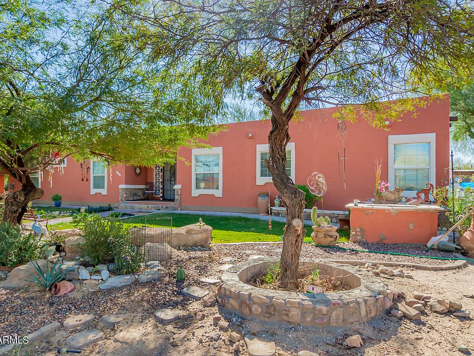 MANUFACTURED AFFIXED HOME - LENDABLE --- DESERT GEM in the Buckeye countryside!!! A 4 bedroom 2 bath that boasts just over 1900 sq. ft. is nestled on an acre of land. This gorgeous property is perfect to put in corrals for horses or other livestock. Enjoy the peaceful countryside and the convenience of NO HOA. Envision yourself entertaining guests outside around the built in firepit without the worry of having your neighbors nearby. It is a must see and has endless possibilities. Outdoor adventure awaits with nearby trails.