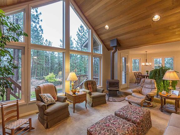 Private & peaceful retreat w/ 10 acres of your own forested paradise. Amazing Northwest wildlife & natural landscape. Newly rebuilt in 2005, this one level custom rancher offers main floor living w/ an open concept, 360 degree forest views, natural stone pathways, large picture windows, hickory cabinetry, quarry tile, Hunter Douglass shades, vaulted Cedar ceiling, professional lighting, Ravelli pellet stove, heat pump, composite deck and paved driveway. 24x30 shop.12 minutes to downtown, 5 minutes to Cheney - WOW!