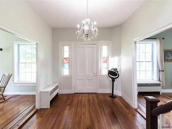Federal Colonial Circa 1793 w/Historic Registry, (Revolutionary Ridge) overlooks the majestic Hudson River Valley & near the Saratoga Battlefield. This Old World Charm offers many updates to make life easy in this stately home. Boasts 9' celings, lg rooms, newer Kitchen w/Berch Hickory cabinets, granite countertops & S/S appliances. (3) updated full bathrooms w/higher vanities & toilets. French doors leading into LR are being stored currently. Newer new-construction windows throughout. Built-in shelves in LR along w/auxiliary wood burning stove in fpl. MBR has wood burning fpl, & masterbath. Original doors & wide hallways, use for an office could be utilized & w/wide pine floors throughout. 12 x 15 older storage shed, walk-out basement w/newer htw heater & furnace. Vast views!