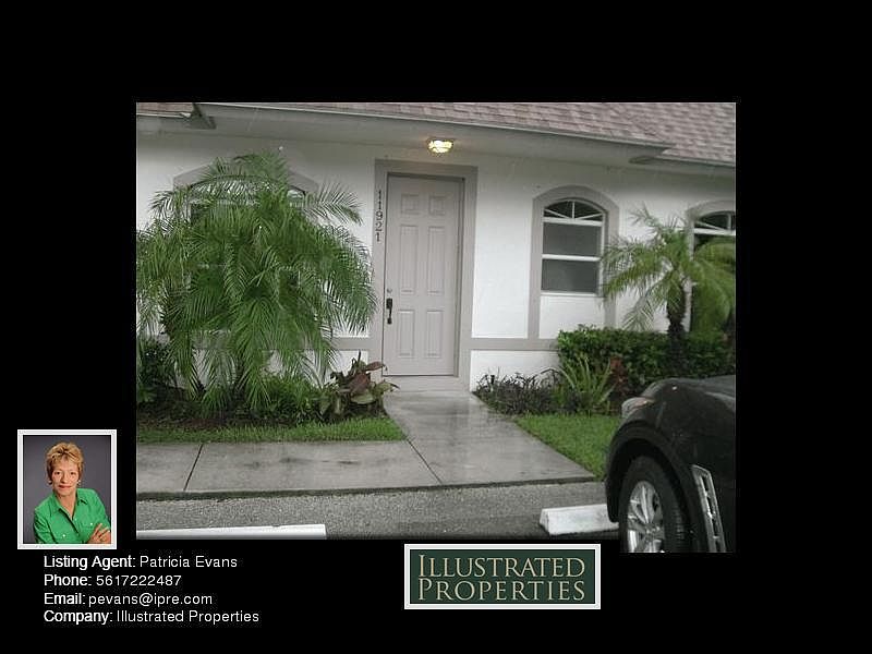 THIS UNIT IS CBS CONSTRUCTION AND IS IN THE 2ND PHASE OF THE COMMUNITY WITH POOL IN WALKING DISTANCE AND GUARD ON DUTY-NEWER CARPET & TILE THRU-OUT-NEW MICROWAVE/CONVECTION OVEN-NEW A/C AS OF 2012 AND NEW FIBERGLASS FRONT DOOR-KITCHEN HAS BREAKFAST BAR, STAINLESS APPLIANCES AND WASHER/DRYER CLOSET-SCREENED PATIO WITH HOT TUB WHICH IS INCLUDED-***TENANT OCCUPIED ON MONTH-TO-MONTH UNTIL DECEMBER 31, 2015-WOULD APPRECIATE 24 HOUR NOTICE TO SHOW**** Listing Agent: Patricia Evans Company: Illustrated Properties/Wellington Phone: 5617222487 Email: pevans@ipre.com