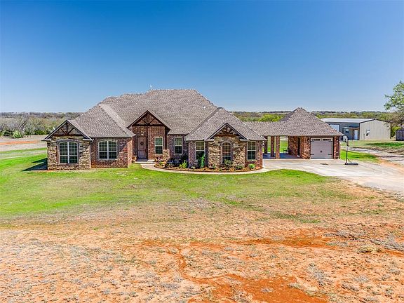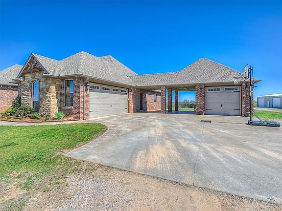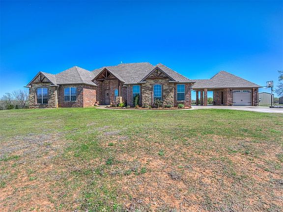 A rural paradise with NO RESTRICTIONS located just minutes away from the I-35 on ramp and city amenities. A short 10 minute trip into Purcell for shopping and dining options and around 25 minutes for even more options in Norman. As soon as you enter the home you are greeted by a spacious vaulted living room, equipped with wood beams and a picturesque view out of the large windows. Easily entertain with an open concept kitchen and living room space. So much thought went into the design of this custom built home, including an amazing amount of storage in the TWO spare closets. Room for everyone to relax with 4 bedrooms, 3 full bathrooms, two living areas, and an office. Roof was replaced in 2020 with upgraded, Class 4, weather resistant shingles. New aerobic septic system installed in April 2024. Foundation reinforced with rebar and foundation piers to support fill dirt. This is just a few of the upgrades included in this home. The 30 acres is a great mix of pasture and timber with a good size stocked pond. The 30x50 shop includes a finished room that would be perfect for a second home office or home gym. Deer and turkey are right out the back door and the Maysville Lake is just down the road for additional fun. You do not want to miss the opportunity to grab this amazing property!