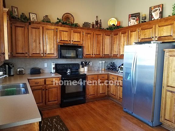 Olathe Northwest High School. Check out this great house in Western Olathe! When you walk into this beautiful home you get the feeling that this house would be perfect for entertaining. The main level has a open floor plan with a living area, dining area, and gorgeous kitchen/breakfast area. The kitchen has beautifully stained cabinets, lots of natural light, and a great deal of storage space! The breakfast area overlooks the lower level living room, which has a fireplace and walks out to the huge back yard. Down another half flight of stairs is the unfinished basement, perfect for storage. All three of the bedrooms are located upstairs, just off the hallway that overlooks the main level. The master bedroom is very spacious with a huge bay window and vaulted ceilings. The master bath has a jetted tub, separate shower and water closet, dual sinks and an over-sized master closet. The other two bedrooms both have large windows for natural light, vaulted ceilings, and share the hallway bathroom. Finally, the laundry is also on the upper level. Dogs under 35lbs please. Any furnishings may be negotiable. The appliances in the pictures do not necessarily represent what is provided with the property. Fireplace may be decorative use only. Thanks for visiting us at www.home4rent.com! (Dimension information deemed reliable but not guaranteed.) If you are interested in applying for this home, just scroll to the top of this listing page and click the box that says, 'Apply online!' Simply follow the instructions and once all parties' applications have been received, you can expect to hear from us very soon!
