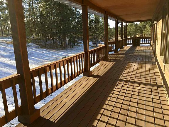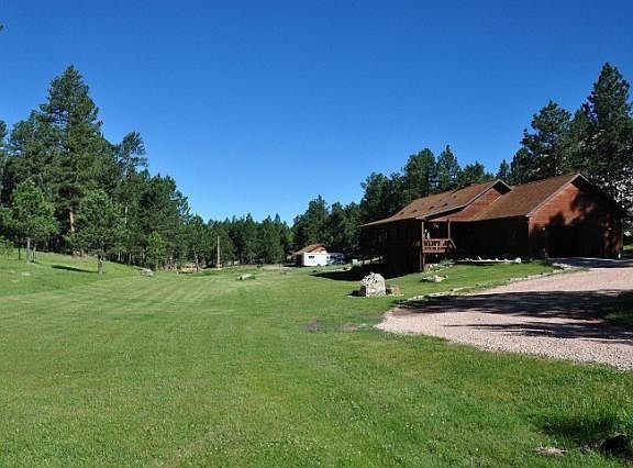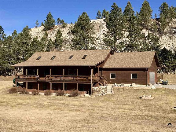 One of a kind setting and beautiful quality built custom home on 6 acres with Black Hills National Forest on three sides less than 6 miles from Custer! Home is at the end of the road and is tucked up against the tailings for the Tip Top Mine for amazing privacy and beautiful views. Open your gate and enjoy all the riding, hiking, and hunting the Black Hills has to offer. The main living area has vaulted knotty pine ceilings/walls, and skylights, and a rocked hearth floor to ceiling with free standing wood stove that separates the living room from the kitchen/ dining area. Kitchen has hickory cabinets and nice island perfect for entertaining. Dining area has sliding doors to back deck. 5 bdrm, 3 bath, full length covered deck, extra garage/shop, adorable chicken coop/garden shed and garden area, a firepit area, and even a corkscrew slide off the end of the deck for children of all ages! :)