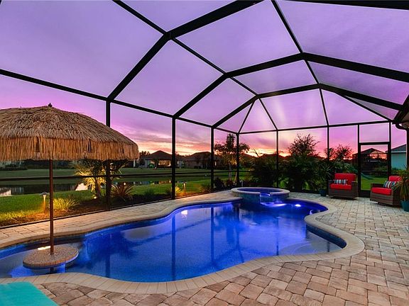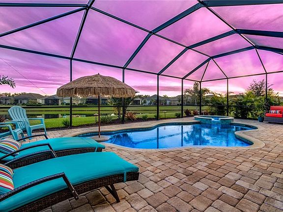 Come live in complete PARADISE! Welcome home to this absolutely stunning pool home nestled in a community that is SO unique! A home that is warm & inviting from the moment you walk in. The new outdoor pool and spa area with a gorgeous pond view is the first thing you'll fall in love with! This award-winning Neal Communities Sunlight 2 model offers 3 bedrooms and 2 bathrooms PLUS 2 den/bonus rooms. The spacious open floor plan boasts immaculate granite countertops, stainless steel appliances, outdoor surround sound with a dedicated wifi/hotspot, upgraded 42-inch cabinets with crown molding, 9.4 ft ceilings, plantation shutters throughout, and upgraded flooring that makes this home just perfect. The private Master bedroom offers dual sinks, huge walk-in closet, new laminate flooring, and stand-up shower! The 2nd and 3rd bedrooms are very spacious on the split end of the home and have their own private bath. Laundry room has separate wash sink and upgraded cabinets for storage. Sliding doors off of the great room lead to your private backyard oasis featuring a beautiful new sparkling heated salt water pool with spa, screened lanai, and cozy seating area which makes a great space for family BBQ's and entertaining. Forest Creek has wonderful amenities! Clubhouse, fitness, swimming pool, playground, an 18 acre lake that is great for kayaks, canoes and fishing. Sidewalks throughout community are great for strolling around the lake or sitting and watching wildlife from the lakeside gazebo.