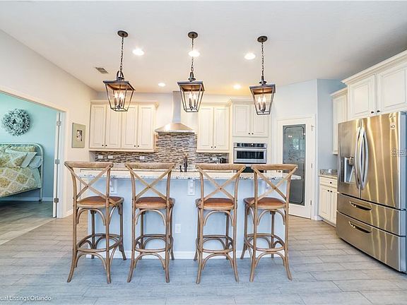 WINDERMERE HIGH SCHOOL!! This completely updated model home is ready for a new family. Owners have spared no expense improving this already great home with a fully fenced yard, plantation shutters throughout, hand picked custom light fixtures and more. From the moment you pull up you will be impressed with the carefully manicured lawn enhanced by the covered front porch and and tile roof. Once inside you will appreciate all the designer finishes. The dramatic 26' foyer welcomes you with tray ceiling and upgraded tile floors. The formal living spaces on your right are the perfect place to entertain or for everyday living. Straight ahead is the true heartbeat of this home. The level 5, custom gourmet kitchen is the perfect place to prepare meal and share conversations with family and friends. The oversized family room is a great place to gather and relax after a long day. French doors lead to a very large and private screened in lanai. Under the stairs you will find great space to store the family treasures. Upstairs you will find 4 bedrooms along with 3 full baths. The master retreat is secluded with his and her closets and a nicely appointed master bath. The secondary bedrooms are all generously sized with two of the rooms sharing a jack and jill bath. The extra large media room is sure to promise hours of fun and lasting memories. Home features ENERGY STAR®Appliances, Programmable Therm, Fresh-Air Intake, Low VOC Carpets, Low-E3 Vinyl Windows, Spray-Foam Insulation, water softener system & more.