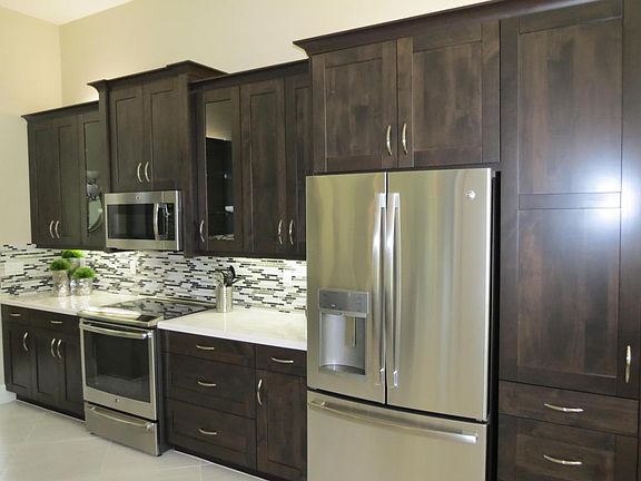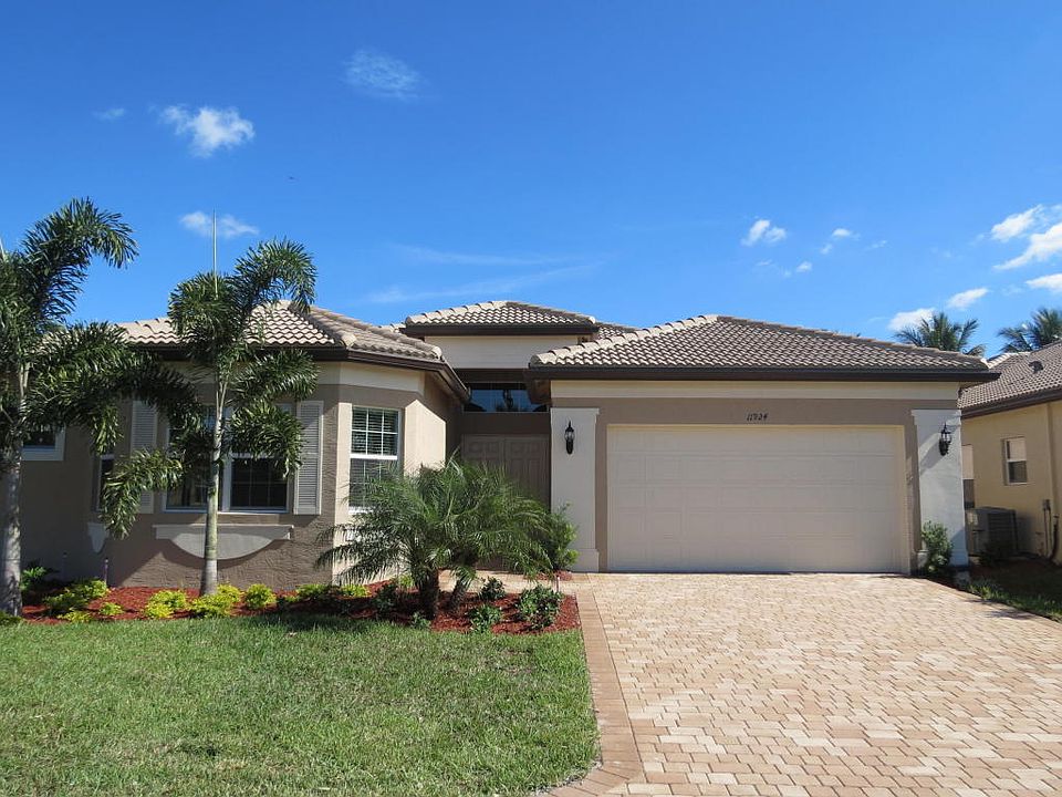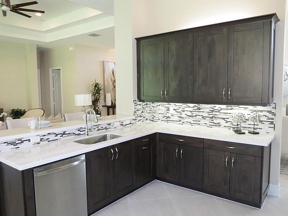 Furnished - Valencia Cove, Lot 671 - Builder new construction with Impact glass windows. Immediate occupancy. $64,000 in builder upgrades. Price includes $45,000 in incentives. Upgrades include additional recessed lights, 24x24 rectified tile floors on the diagonal, White Storm Silestone quartz countertops in the kitchen, with Fairhaven III Alder Dark Roast cabinets and a glass tile backsplash. The master bath includes Juparana Delicatus granite countertops and frosty white Lexington Maple cabinets. Vignette package includes custom paint, window treatments and ceiling fans. Call for a full list of upgrades. Additional closing cost incentives may apply. Incentives may change at any time.