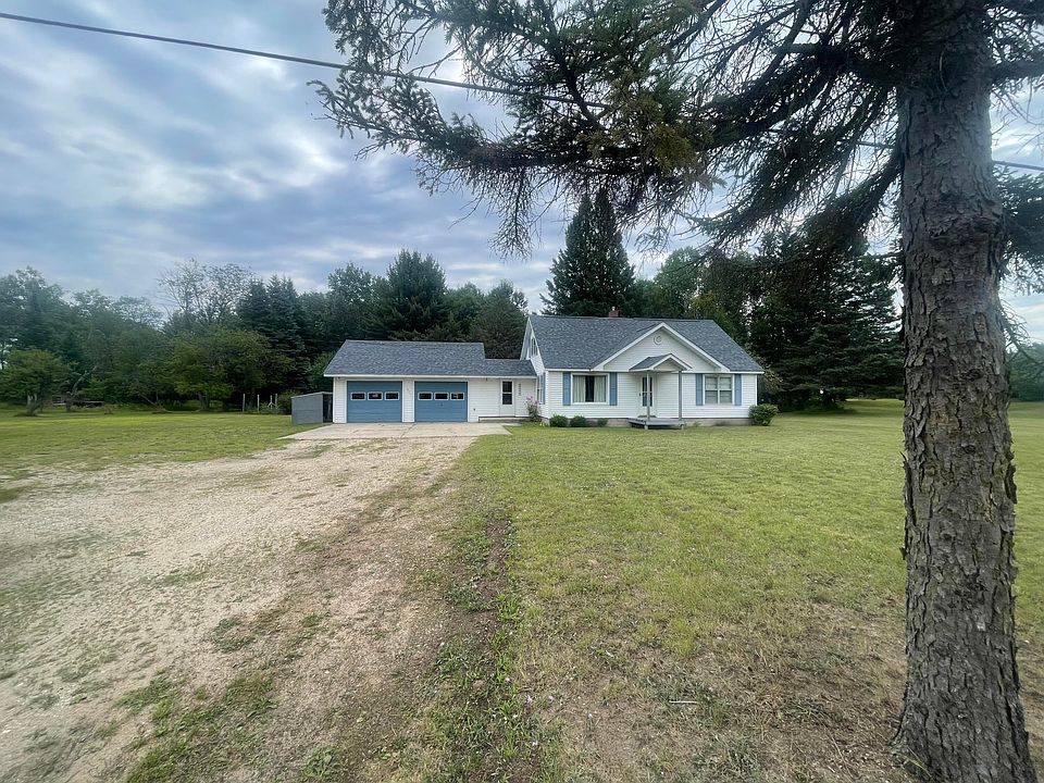 This beautifully built family home has been cherished by the same family since its construction around 1951. Ideally situated just minutes from the village of Roscommon and Au Sable River access, it offers a prime location for outdoor enthusiasts, with an 11-minute drive to N Higgins Lake State Park and convenient access to nearby trails. Set on 7 acres of predominantly wooded property, with about 1 acre of well-maintained lawn around the house, the property features a large fenced garden, three producing apple trees, and a small back deck, creating a tranquil setting for family gatherings. Inside, the home includes a spacious classic kitchen, a large mud room, a separate laundry area, and four generously sized bedrooms. Notable updates include a new well installed in 2000, a roof replacement approximately 13 years ago, and a furnace installed around 10 years ago. The septic system was serviced this July. This property is ready for new owners to revitalize and enjoy its charm.