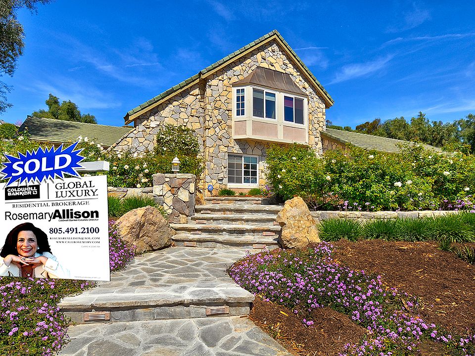 Beautiful 4 bedrm,3bath home in Santa Rosa Valley sitting on over an acre of land. This home exudes Tuscan warmth from the customized formal living and dining room w/volume ceilings and tile floors, gourmet kitchen granite counters, rich dark cabinetry w/breakfast room, huge family room with fireplace and large wet bar, hardwood floors, indoor laundry, and dual heating and A/C. Master bedroom with fireplace. There is a large covered pool attached to the home. Car enthusiasts 4 car garage and a concrete driveway to allow potential RV or multiple car parking. The home is surrounded by many fruit trees and landscaping. The property is zoned for horses. One-bedroom downstairs is currently utilized as office. Huge laundry room.
