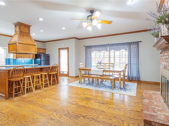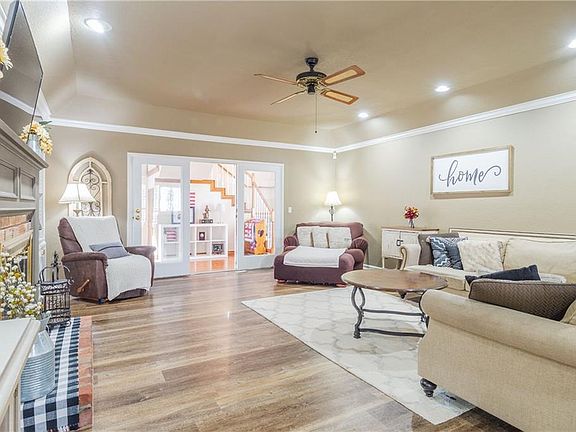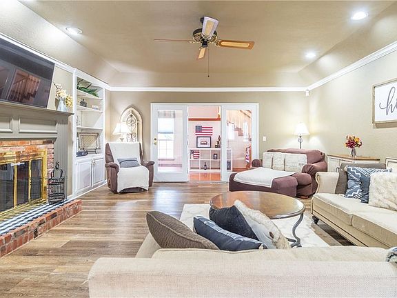 Stunning curb appeal draws you in and leaves you wanting to see more of this 4 bedroom 4 bath home. A spacious living room welcomes you with high ceilings, brick fireplace and built-in shelving. Just off the entrance you will find a lovely formal dining space that is currently being used as an additional family room. A HUGE kitchen with second fireplace, eat-in bar, tons of cabinetry, ample countertop space and second dining area, gives you the perfect place for entertaining guests or gathering with family for the holidays. The master suite and 2 additional bedrooms can be found downstairs, while the 4th bedroom and large bonus room are situated upstairs. Outside may be your favorite spot with the large covered patio and second story balcony giving you the perfect spot to enjoy the Oklahoma spring weather. Seller has agreed to a $1,000 carpet allowance. Pool table is included if desired.