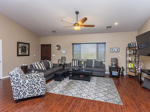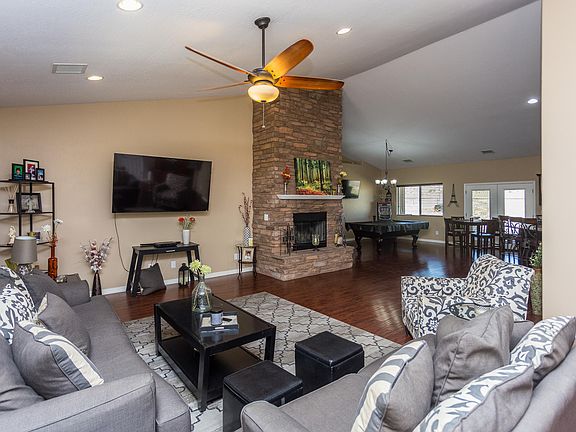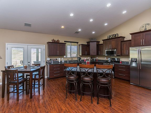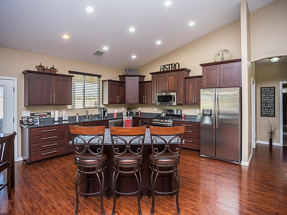You will fall in love with this gorgeous home! This home is perfect for entertaining and loaded with upgrades. The kitchen is a cooks dream featuring upgraded stainless steel appliances, Blue Pearl Granite Counter tops, Cherry wood cabinets, 5 burner gas stove, large walk in pantry. Hard wood and Italian tile flooring. Oversized bedrooms. Spacious master suite with two sided fireplace and spa like bath. The property is perimeter fenced with pipe rail, non climb fencing, reinforced corners, and automatic gate. RV hookups on both sides of the house, sewer pump out on one side. Oversized 1,000 sq.foot garage. Nuevo Filter system installed, good producing well. Oversized septic tank. Borders State Land, great for riding horses! Located at the end of a Cul De Sac.This home is a must se