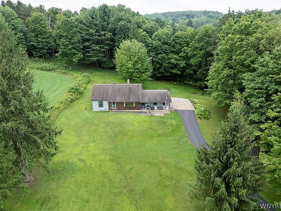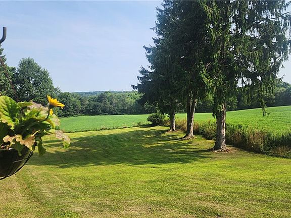 BREATHTAKING MILLION DOLLALR VIEW! Truly a special place. Winding drive to private, partially wooded lot (approx 2 acres) leading to a wonderful home with a covered front porch overlooking view of the countryside. Ideal spot for morning coffee while the sun rises. Tranquil surroundings with manicured gardens, berry bushes, basketball court, firepit for evening bonfires all surrounded by woods and fields. 2 bdrms + full bath down, 2 bdrm + full bath up, 3rd bdrm with walk-in closet. Country kitchen with abundance of cabinets and counter space, sliding glass door to 2-tier deck to enjoy outdoor entertaining. Livingrm with flawless wood floors and large bay window w/view. Primary bdrm with wbfp and plenty of storage. 21x19 fam rm in lower level (not incl in sq ft). 24x12 carport makes for an ideal "potting shed" or workshop. Also a 12x24 heated workshop with newer metal roof. And what a GREAT SLEDDING HILL!! Original owner and pride of ownership is evident. This home is full of love and great karma. Garage + carport+ heated workshop! central air, wired for generator. Showings begin at open house 7/21 11-1. Seller needs delay close for approx 1/25 but worth the wait. Do not miss!