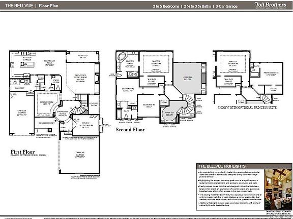 The Toll Brother's Belllvue plan features a beautiful two story great room. The covered entry leads into a soaring two - story circular foyer that opens to the dining room with a large pictorial window. The large breakfast area leads out onto the covered patio and the kitchen offers an abundance of counter space plus a large center island.