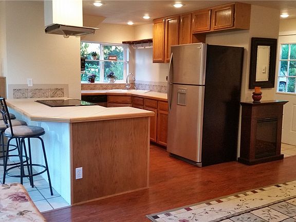 Wonderful remodel inside & out! Large lot w/garden & room for garage. Home features warm laminate flooring & paint, porcelain tile floors & counters, full pullouts in pantry, tiled shower upstairs & half bath w/laundry downstairs, office area upstairs & breakfast bar. Open floor plan gives home warm larger feel. French doors open to large deck, garden, pond & outdoor living area. Community club close w/bball court, pool & river access. 5 mins to town & hwy 92 A great home at a wonderful price!
