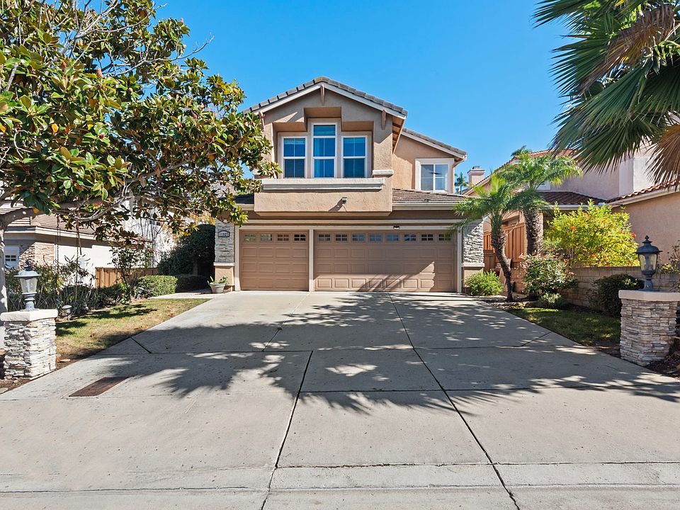 Beautiful and spacious Sabre Springs 4 Bed + Bonus Room Home blends comfort, location and lifestyle! Located on a peaceful cul-de-sac this home features a stunning and open kitchen with white shaker cabinets and stainless steel appliances including French Door refrigerator. The kitchen overlooks the sparkling swimming pool and jacuzzi, outdoor dining area. Other features include 3 car garage, two-story ceilings, formal dining area, and a flexible bonus room perfect for a home office, playroom, or media space. One of the bedrooms is located downstairs, as well as the laundry room. Ideally situated near Sabre Springs Park, playgrounds, sports fields, and walking trails, this home has great proximity to retail, dining, freeways, and top rated Poway Unified Schools.