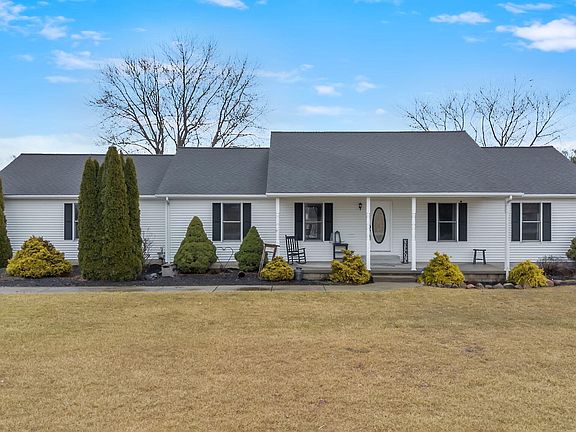 This one owner ranch home is nestled on 1.67 acres! That's right, this non subdivision home offers plenty room for your boat or RV! The Western facing covered front porch is a great place to relax & makes for a warm welcome into this home. A spacious living room with a vaulted ceiling and an electric fireplace offers a great spot to entertain. The dining room boasts a butler pantry and sliding glass doors for deck access. In the kitchen you'll find beautiful Hickory cabinetry complimented by granite counters and a full SS appliance pkg. Down the hall you'll find bedrooms 2 & 3 and shared full bath as well as centrally located laundry room. The primary bedroom boasts vaulted ceilings, 2 large closets and it's own bathroom. The whole house has true hardwood flooring, oak trim and oak doors! Like outdoor living? A rear deck with a covered pergola overlook the fenced in back yard( great for your pets!) If you have toys, you'll love the 26 x26 oversized attached garage as well as the 24 x 40 finished detached garage! Centrally located between town/shopping as well as easy access to Sandy Pines!