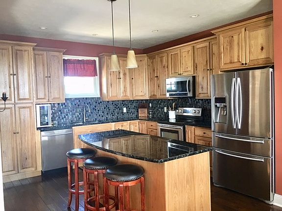 Beautiful home, less than 4 years old perched on a hilltop country location. This home features 5 bedrooms, 3 baths and over 4,000sqft. The open concept floor plan boasts vaulted ceilings in the living room with a vent less stone fireplace, and French doors that lead to the covered porch and large deck, great for entertaining. The eat-in kitchen is stunning with hickory, soft-close cabinets, granite counter tops. A formal dining room and laundry are also on the main floor. The Master bedroom, has a large walk-in closet, soaking tub and tile shower. There are 2 more bedrooms on the main level with along with a full bath with a fourth bedroom upstairs. The full basement is finished with a very large rec room, theater room, safe room, full bath and additional bedroom. This property sits on approximately +/- 3 acres. The new 30*56 pole barn has electric, and concrete floor. Enjoy peace and serenity with unbeatable views from this gorgeous home.