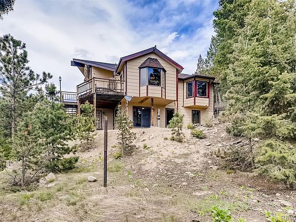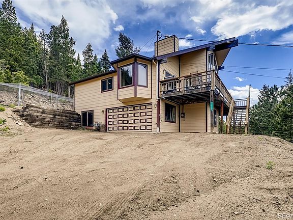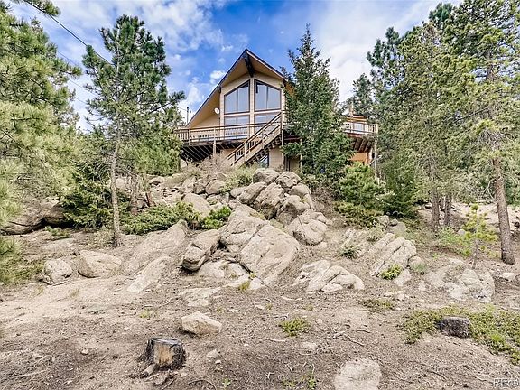 Life is great when your closest neighbor is a mountain! This astonishing 3-bed, 3-bath home is tucked away just a few turns off HWY 72 in Coal Creek Canyon, nestled right next to Scar Top mountain. Enjoy broad, sweeping views of Longs Peak and Mt. Evans from the wrap-around deck, or relax by the fireplace bedecked with natural stone and recessed shelving. A carpeted loft overlooks a living room refinished with a one-of-a-kind hardwood floor with custom inlays. Custom cabinetry, granite countertops, and roll-out drawers adorn a spacious, vibrant kitchen. Master bathroom is outfitted with man-made marble light fixtures and a luxurious porcelain tub. Convenient to both Golden and Boulder, this home has charm for days. A rustic, Rocky Mountain theme is replete throughout, and generously sized windows allow natural lighting into every room.