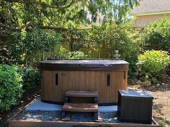 Don't miss this custom built contemporary view home with 3 bedrooms, 3.5 bathrooms in the exclusive Del Mar Community with two private beaches, moorage rights, and private lagoon. Serenity is found in the secluded backyard with a long private driveway leading to main level living. Step from the entryway deck into the entry way that opens to the living room and be greeted by high ceilings and soaring windows. The kitchen and dining areas also have high ceilings and are open concept which is great for entertaining. The large open designed kitchen includes granite countertops, a center island with seating, tons of cabinetry and storage space, and is all open to the dining area. The dining area has French doors leading out onto a deck, which is great for grilling or just enjoying the view on those beautiful days; or turn on the 2-way gas fireplace (living and dining rooms) for cozier dining on those cold, wet days. Double doors off the entryway hall open into a wonderful master bedroom retreat. The master bedroom has high ceilings, a wall of windows and French doors leading onto the deck. The en-suite master bath includes granite, a separate walk-in double head shower, jacuzzi tub, and large double vanity. No master bedroom is complete without a walk-in closet, and this one will not disappoint. Back out into the entry way you'll find the 1/2 bath and also stairs to take you to the ground level living areas. The downstairs has a 2nd large living area which walks out through sliding glass doors to a ground level patio area and also serves as a convenient 2nd entry with lower level parking for 2 vehicles located just outside the patio area. Brand new luxury vinyl wood installed throughout the downstairs! 2 bedrooms downstairs both include en-suite bathrooms with heated tile flooring. A large separate laundry room with attached finished bonus room and unfinished utility room for storage completes the lower level living. There are natural gas hook ups on both the front patio and main level balcony for grill/space heater. Keypad lock on entry door. Detached two car garage with opener. Private back yard with Marquis hot tub fits 6 - purchased brand new and professionally installed in December 2019! Approximately 10 minutes to downtown Anacortes, and between 10-15 minutes to NAS Whidbey Island. Skip the traffic, enjoy the views, and come home to this beautiful Del Mar custom home! Landscaping care and hot tub care included! Pets considered on a case-by-case basis. Landscaping care and hot tub care included! Pets considered on a case-by-case basis. No smoking.