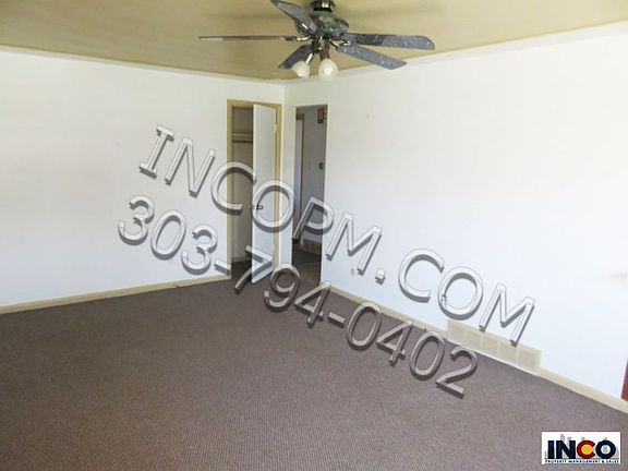 Two bedroom one bath triplex in Arvada. This 900 sq ft triplex features an additional 900 sq ft of unfinished basement for storage usage. Washer dryer hookups, ample kitchen cabinet storage, ceiling fans, ceiling alcove, and a fenced yard are just a few features this property provides. Great location near schools, grocery store, shops and starbucks!! Apply today! No Section 8!! 303-794-0402