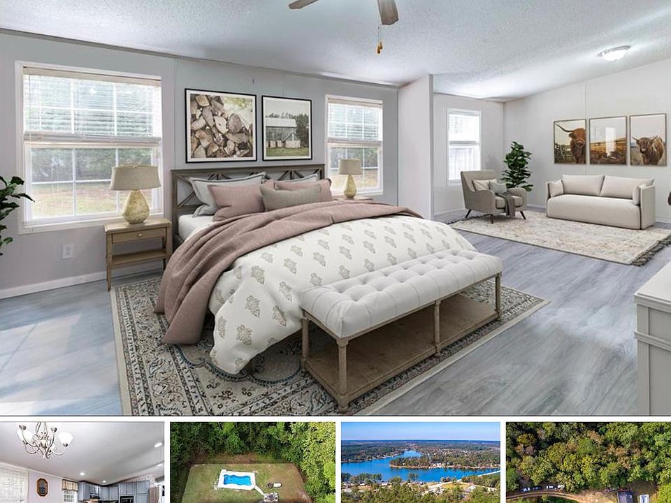 This kind of property doesn't come available often!! With over 4 acres, 2200sf home and an in-ground pool what more could you ask for! All this and its within walking distance to Alex Harvin public boat landing. The home has a very spacious open floor plan with 4 large bedrooms, living room, formal dining room/family room, and one of the biggest master suites I have seen. Lots of privacy and very close to the lake, come see it today!!