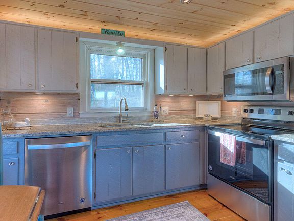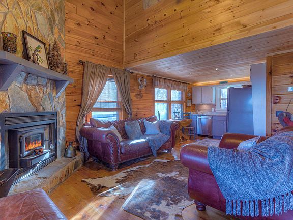 Million Dollar Views from this 3/2 true log home located on Cherry Log Mountain! Cozy, & charming cabin offers direct mountain views of Rich Mountain from 2 levels of covered porches. Relax in the great room featuring a stone fireplace w/ wood stove insert. Enjoy cooking in custom kitchen w/ brand new Whirlpool stainless steel appliances, granite countertops, tile backsplash and refurbished cabinetry. Main floor conveniences with 2 bedrooms, renovated bathroom, laundry facilities and pantry. Retreat upstairs to private master ensuite bathroom with two marble vanities, large custom shower, and marble floors. Stand up crawlspace provides additional storage and cabinetry. Located in between Ellijay and Blue Ridge offering access to 9 private lakes, and the Benton MacKaye Hiking Trail. This cabin would make a fantastic rental, or second home!