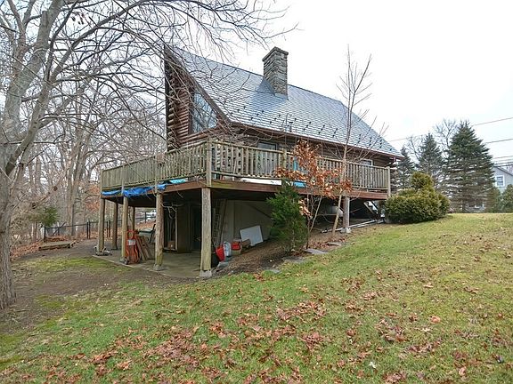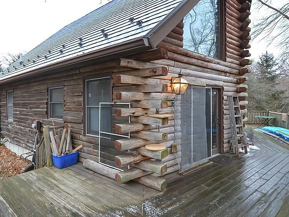 Charming log cabin situated on a nice size lot in the more rural area of Taunton. This cozy log home has a wide open first floor plan. The main floor living area boasts several large windows and vaulted ceilings which allows so much natural light to cascade throughout. Cozy up to the old fashioned wood stove and enjoy the beautiful views just beyond the large wrap around deck. Two bedrooms and a full bathroom complete the first floor. The second level has a large family/bonus room which overlooks the main living area, and provides some of the best vantage points to see the wooded lot from the two large triangular shaped windows above. The basement level has a slider that walks out to the rear of the home, with the potential to offer added living space if desired. There is plenty of off street parking and a large fenced in yard adjacent to the right side of the home. Price is reflective of some necessary TLC.