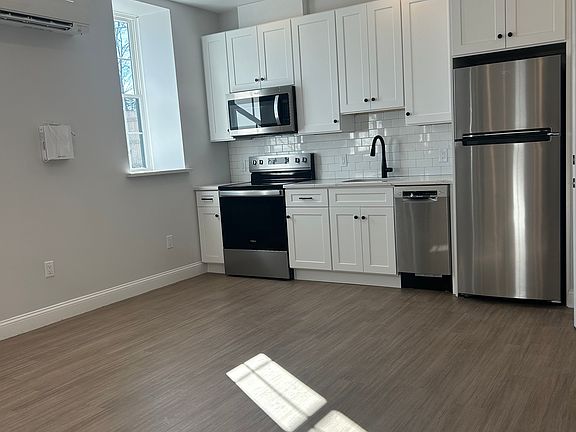 Brand new renovation right down to the studs. Professionally managed one bed one bath units offer modern comfort and style. Features include open floor plan, spacious and sun lit with large windows, providing an airy inviting atmosphere. The contemporary kitchen includes brand new stainless steel appliances, including a Bosch dishwasher paired with quartz countertops and sleek, white cabinetry in unit washer and dryer for your convenience, stylish flooring, durable and attractive laminate wood throughout pets allowed with landlords approval, walking distance to East Weymouth, commuter rail, and short distance to Hingham Harbour off street parking near the first to live here! Going fast for Showing today. 12 month lease. Landlord responsible for water, trash removal, snow removal and landscaping. Tenant responsible for utilities.