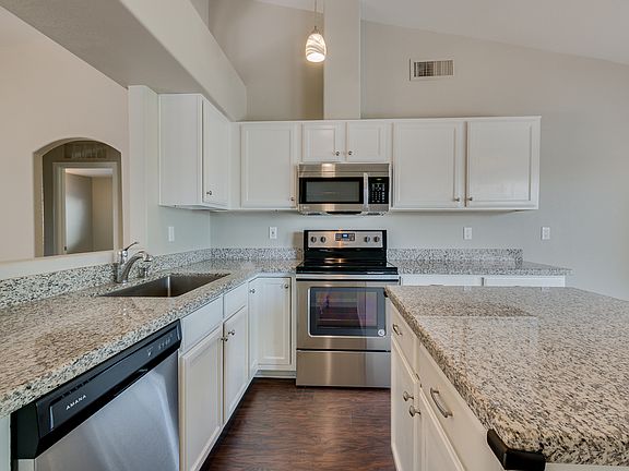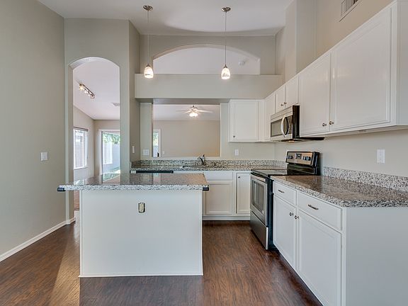 Curb appeal meets a pleasant interior with fresh paint and brand new stainless steel kitchen appliances! Inside you'll notice vaulted ceilings and cut-out walls which creates an airy feel throughout the living and dining areas. In addition to new appliances, the kitchen features granite countertops and white cabinets to match. Master suite amenities include dual sinks, a water closet, and a walk-in closet. Out back, find a covered patio and a grassy yard. Nearby schools, parks, Walmart, and 202 access. All Opendoor homes come with a 30-day satisfaction guarantee and one-year premium warranty. Terms and conditions apply. Open House: Mon-Sun, 6am-9pm