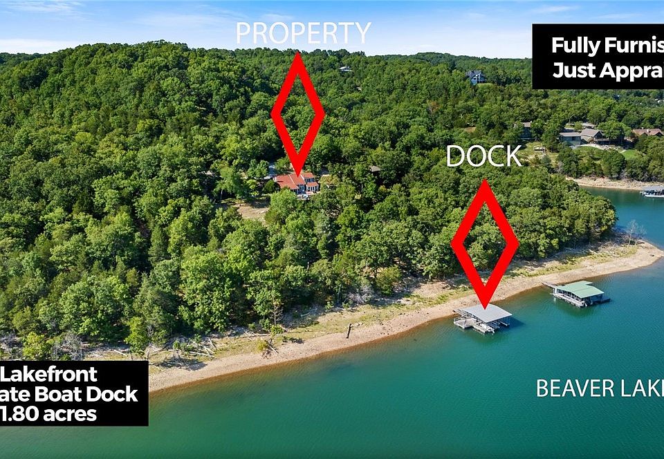 This estate has the WOW factor. Lakefront luxury home with private boat dock (2 slips) showcasing spectacular views of Beaver Lake. Situated on two parcels totaling 1.80 acres, this charmer was completely remodeled and updated throughout in 2019. Multiple outdoor entertainment areas were designed creating access to the water’s edge. This retreat is being sold fully furnished with acceptable offer and features an open concept, stylish kitchen with new s/s commercial appliances, quartz countertops, separate dining room with scenic views, cheerful bedrooms, luxurious living room boasting a spectacular wood burning fireplace, charming detached Scandinavian-style studio, and an exquisite dry creek bed surrounded by beautiful landscaping. Schedule your showing to see this entertainer's delight.