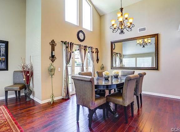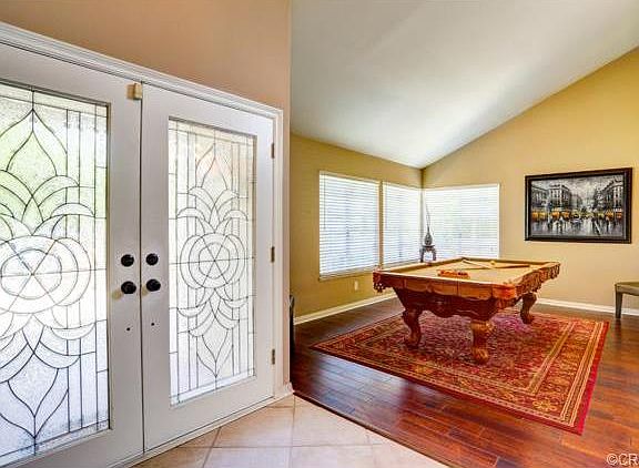 Gorgeous 3 Bedroom + office that could easily be converted to 4th bedroom, Single level Pool home located in the desirable neighborhood of Fairview Estates in the city of Corona. This upgraded home is situated on a huge 10,000 sqft corner lot and has plenty to offer. Enriched with an abundance of natural light, this spacious floorplan offers custom upgrades throughout. Dramatic entry through the custom leaded glass door opens to the formal living room with vaulted ceilings, hardwood floors, and 18" tile flooring. The family room boasts designer paint, tile flooring, and a gorgeous brick fireplace. Gourmet kitchen features oak cabinetry with custom pull-out drawers, newer stainless steel appliances, recessed lighting, and separate dining nook. Other wonderful upgrades include wide baseboards, designer lighting fixtures, and ceiling fans. Large master suite with closet, and master bathroom with dual vanities & upgraded lighting fixture. Outside you will find the huge yard complimented with a beautiful pool, and large covered patio. This home is also equipped with a large 2 car garage. This wonderful neighborhood is close to schools, shopping, entertainment, parks & outdoor recreation. This is a must see!