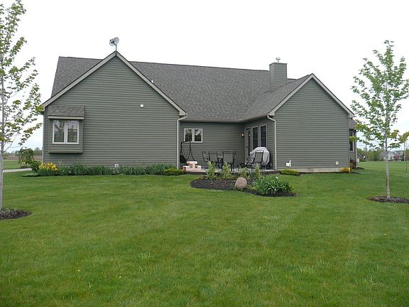 Custom built quality with no expense spared....this open and airy floor plan features a vaulted Great Room open to the kitchen/dining areas with a double-sided brick fireplace, raised hearth and cherry wood mantle! Behind the great room fireplace is a library/hearth room with built-in bookshelves and a door to the rear paver patio! Also featuring a fully equipped first floor home office with built in desk, cherry cabinets, credenza, and shelving! A DELUXE first floor master bedroom offers a vaulted ceiling with plant ledge, double closets, a spa-jetted tub, and a double bowl vanity. The fully equipped kitchen boasts an extra large center island/bar, stainless steel/black appliances, cherry cabinetry with under cabinet lighting and convenient access to the first floor laundry! All of this luxury is situated on 1+ acre of velvety lawn with paver sidewalks/patio, extensive landscaping, and a side-load three car garage! DETAILS MAKE THE DIFFERENCE HERE...must see to appreciate the QUALITY and VALUE!